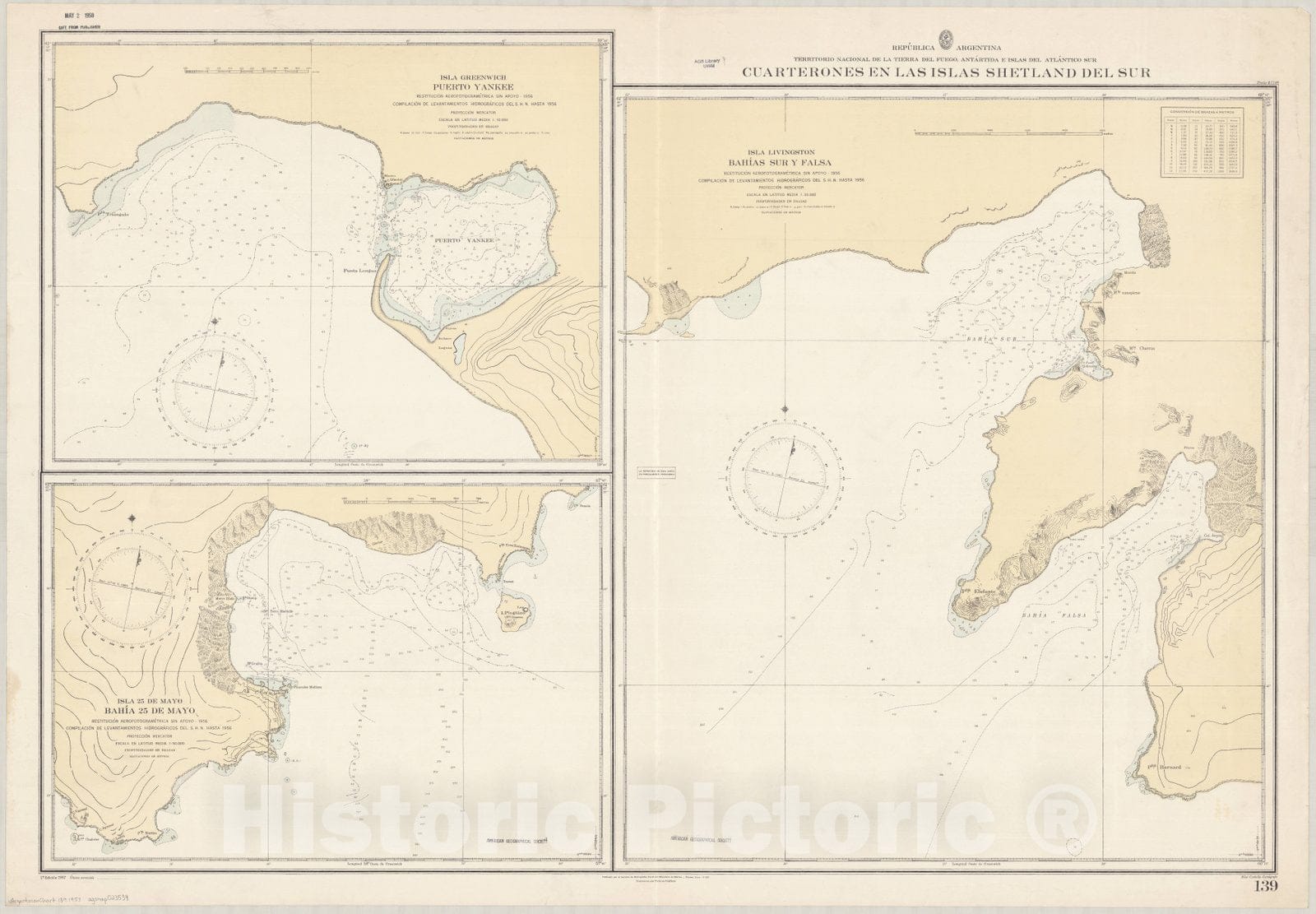 Republica Argentina, Territorio Nacional de la Tierra del Fuego, Antartida e Islas del Atlantico Sur, Cuarterones en las Ilsas Shetland del Sur / publicado por el Servicio de Hidrografia Naval del Ministerio de Marina