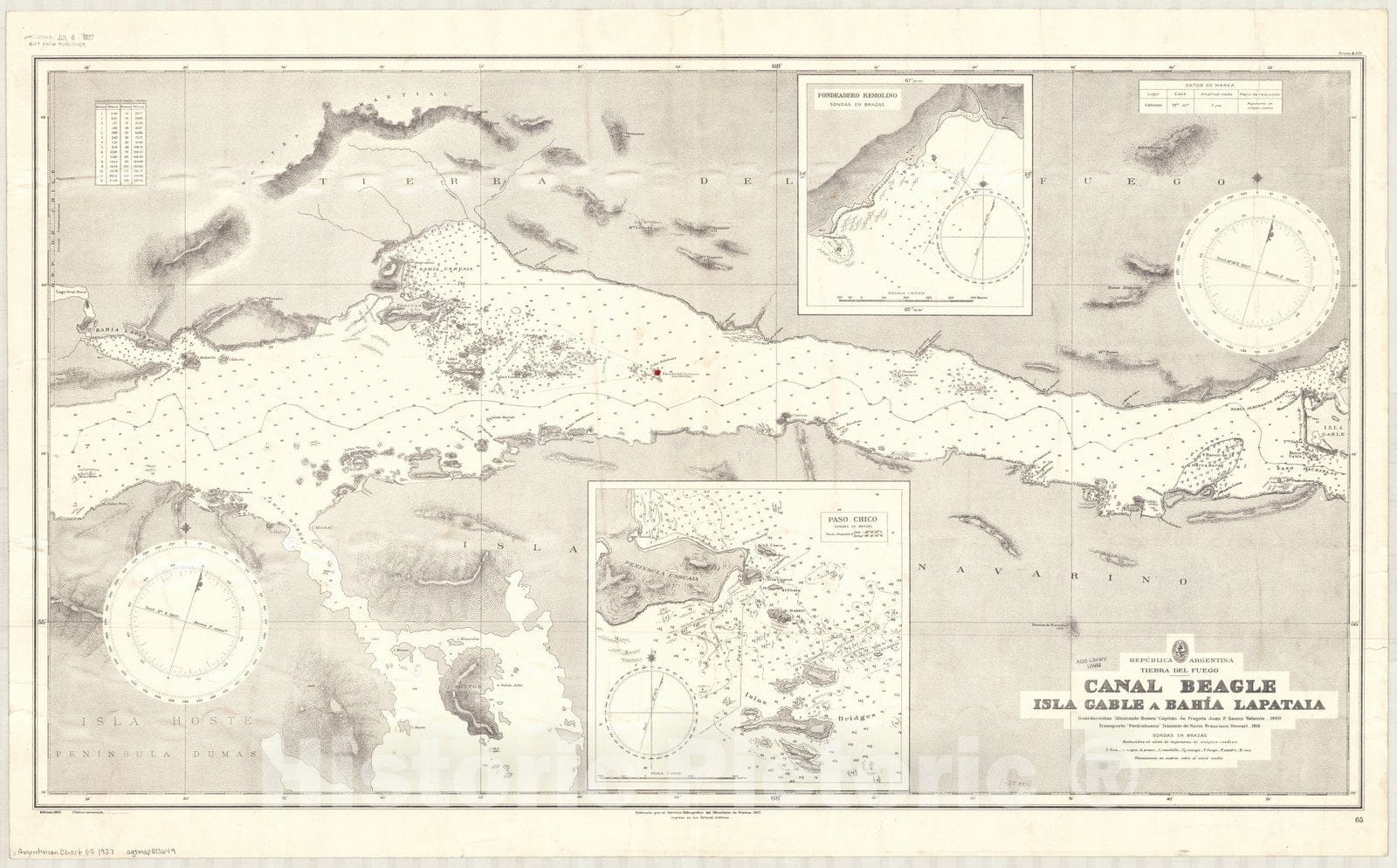 Map : Tierra del Fuego 1927, Republica Argentina, Tierra del Fuego, Canal Beagle, Isla Gable a Bahia Lapataia , Antique Vintage Reproduction