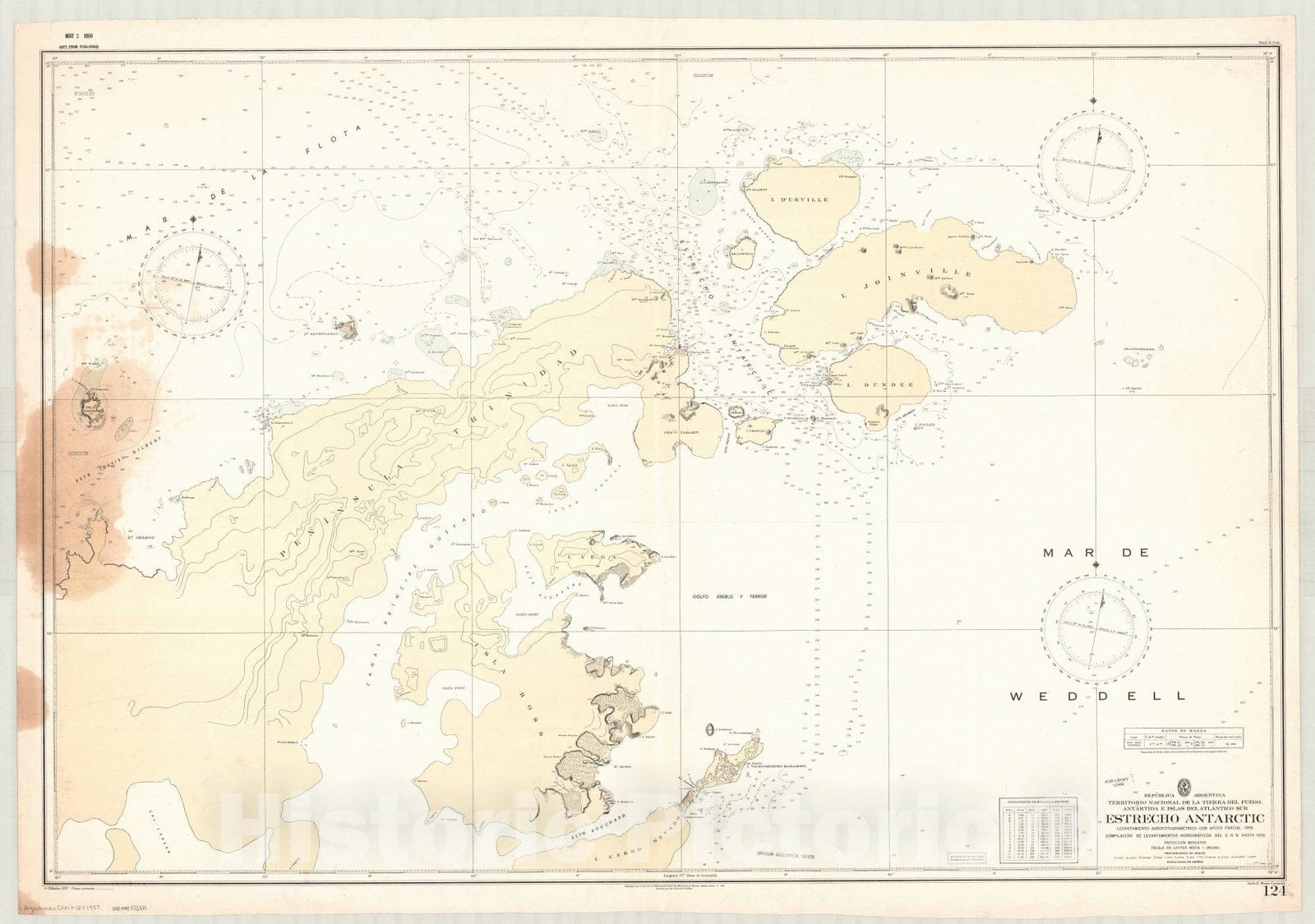 Republica Argentina, Territorio Nacional de la Tierra del Fuego, Antartida e Islas del Atlantico Sur, Estrecho Antarctic / levantamiento aerofotogrametrico con apoyo parcial 1956 compilacion de levantamientos hidrograficos del S.H.N. hasta 1956 ; publi