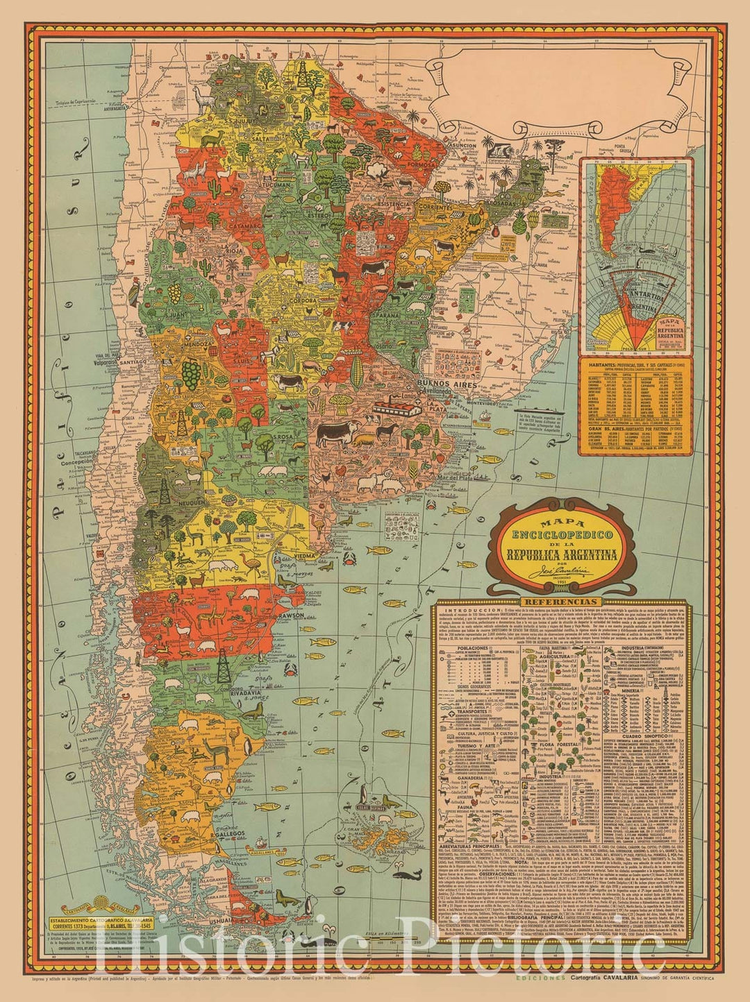 Historic Map - Mapa Enciclopedico de la Republica Argentina por Jose Cavalaria Ingeniero/Enciclopedico map of Argentina by Jose Cavalaria Engineer 1951, 1951 - Vintage Wall Art