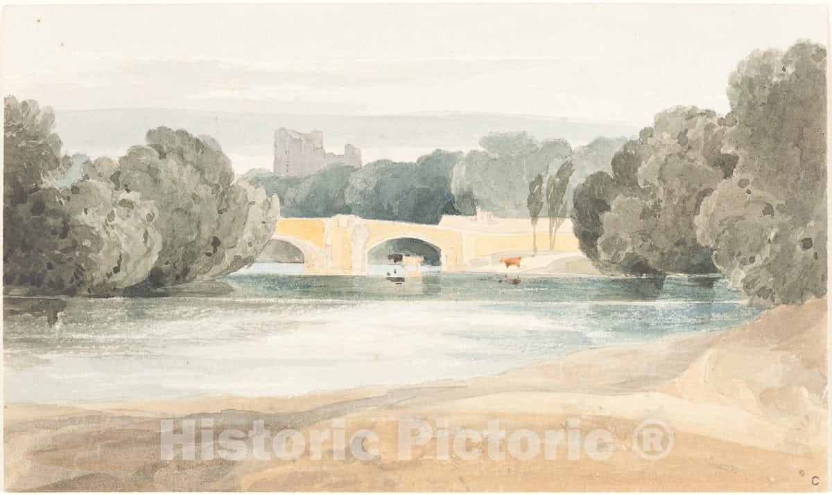 Art Print : Bulwer, After Sell Cotman, Bridge at Knaresborough, c.1803 - Vintage Wall Art