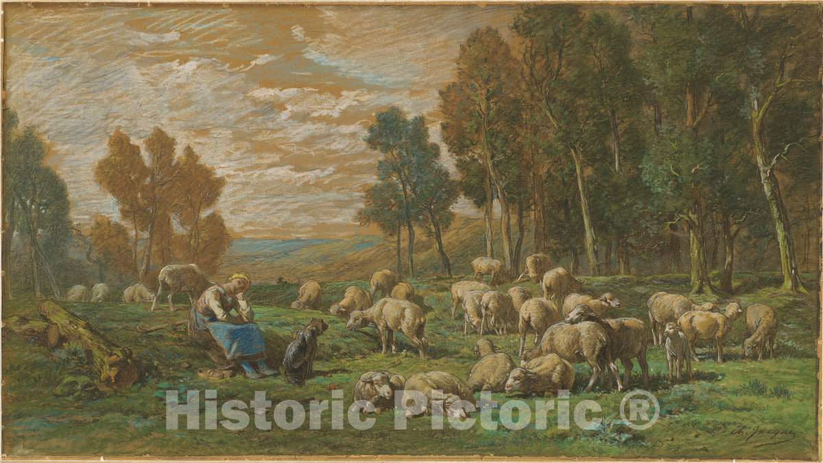 • .Art Print : Charles Émile Jacque, The Shepherdess, c. 1869 - Vintage Wall Art
