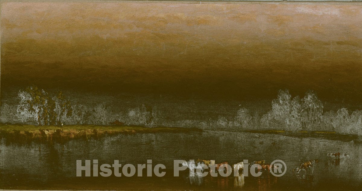 Art Print : Cows in a Pond at Sunset, Sanford Robinson Gifford, c 1860, Vintage Wall Decor :