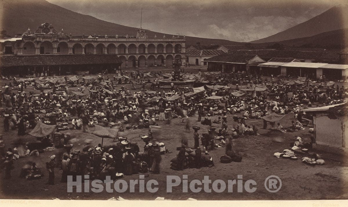 • .Art Print : Eadweard Muybridge, Plaza and Viceroy's Palace-Antigua de Guatemala, 1877 - Vintage Wall Art