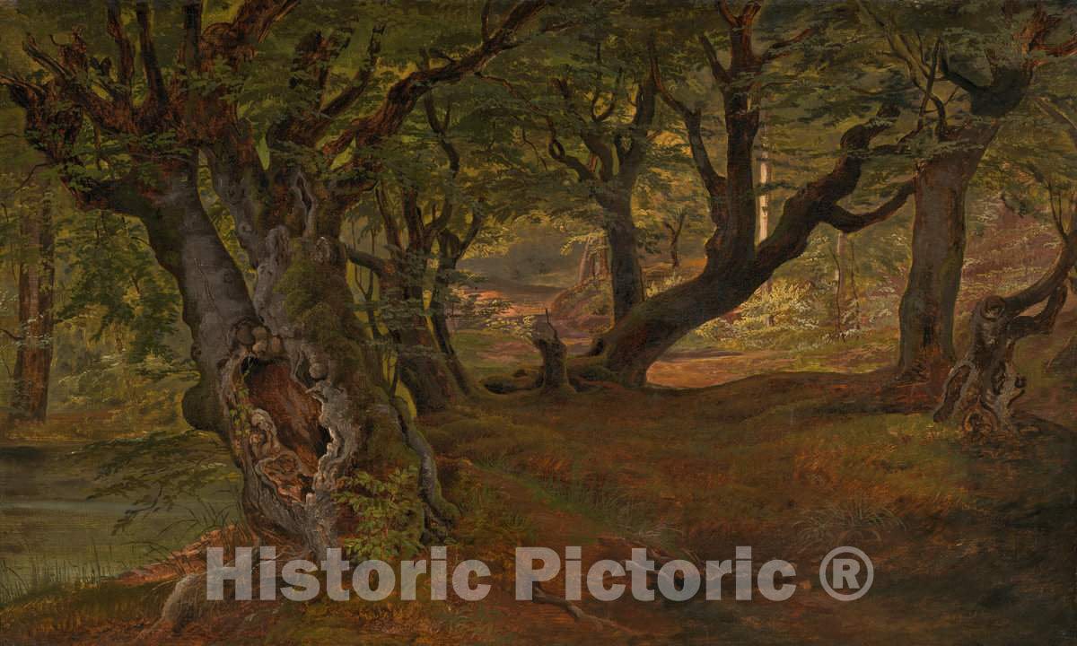 • .Art Print : Frederik Sødring, View of Bregentved Forest, Sjaeeland, mid 1830s - Vintage Wall Art
