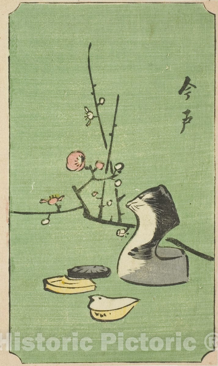 Art Print : Imado, section of a sheet from the series "Cutout Pictures of Famous Places in Edo (Edo meisho harimaze zue)", Utagawa Hiroshige, c 1852, Vintage Wall Decor :