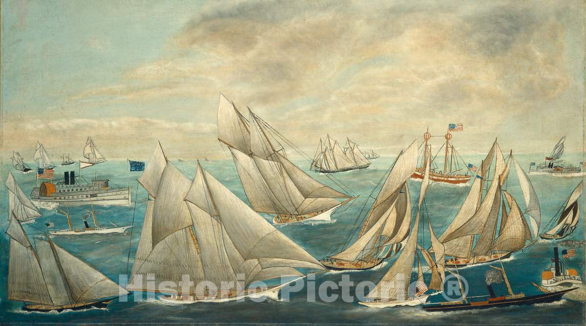 Artist: American 19th Century | Painting: Imaginary Regatta of America's Cup Winners | Original Medium: oil on canvas