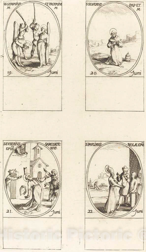 Art Print : Jacques Callot, STS. Gervase & Protase; St. Silverius; St. Eusebius of Samosata; St. Paulinus of Nola - Vintage Wall Art