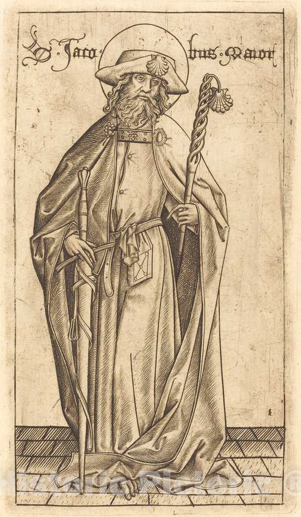 Art Print : Meckenem After Master E.S, Saint James The Great, c.1475 - Vintage Wall Art