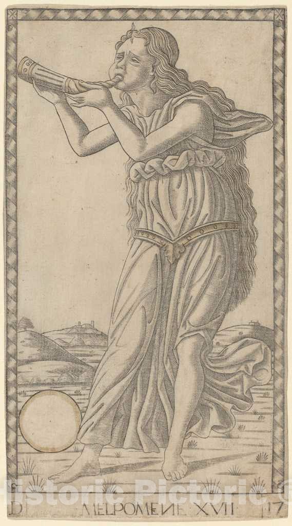 Artist: Master of the E-Series Tarocchi | Print: Melpomene | Original Medium: engraving with traces of gilding