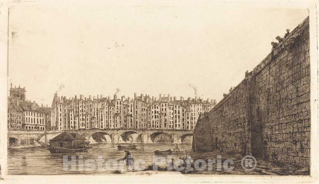 Art Print : Meryon After Victor Jean Nicolle, Le Pont-au-Change, Paris, vers 1784, 1855 - Vintage Wall Art
