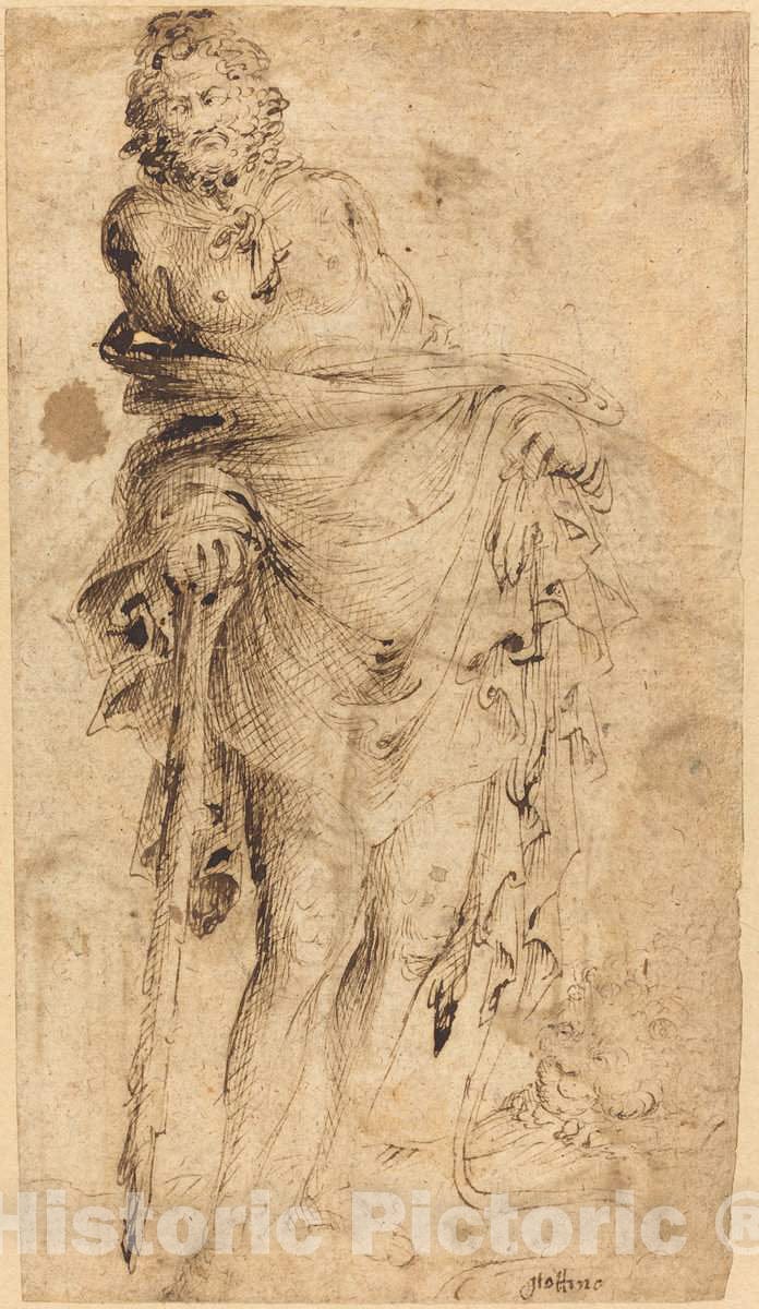 Artist: Parri Spinelli | Drawing: Hercules Leaning on His Club [recto] | Original Medium: pen and brown ink on laid paper