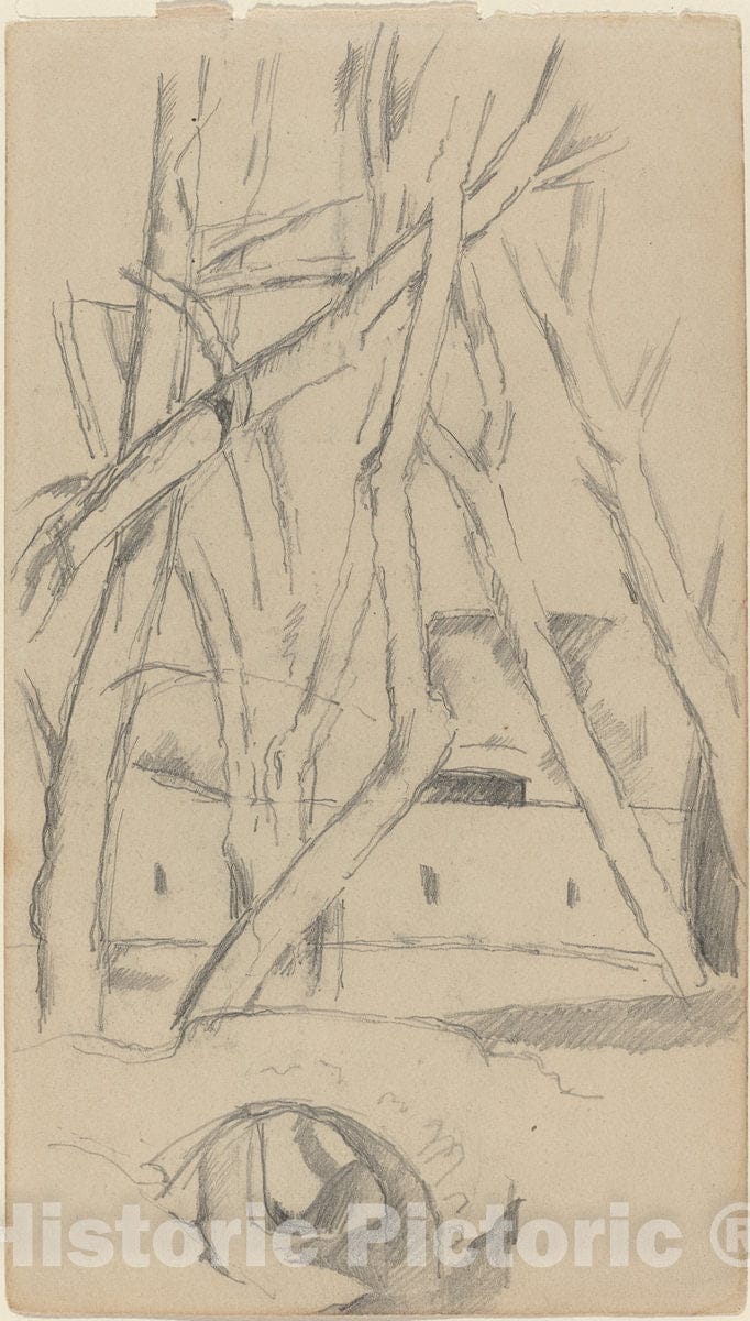 Artist: Paul C?zanne | Drawing: The Little Bridge [recto] | Original Medium: graphite