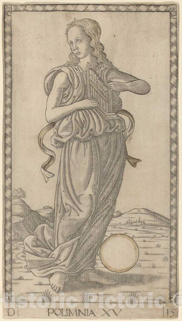 Artist: Master of the E-Series Tarocchi | Print: Polimnia (Polyhymnia) | Original Medium: engraving with gilding