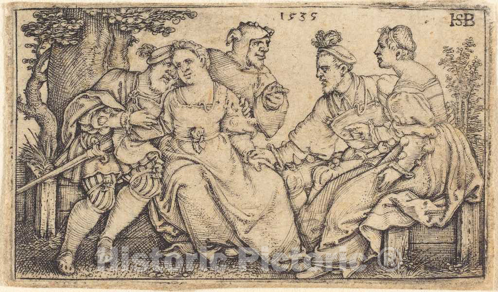 Artist: Sebald Beham | Print: Two Loving Pairs with Clown | Original Medium: engraving