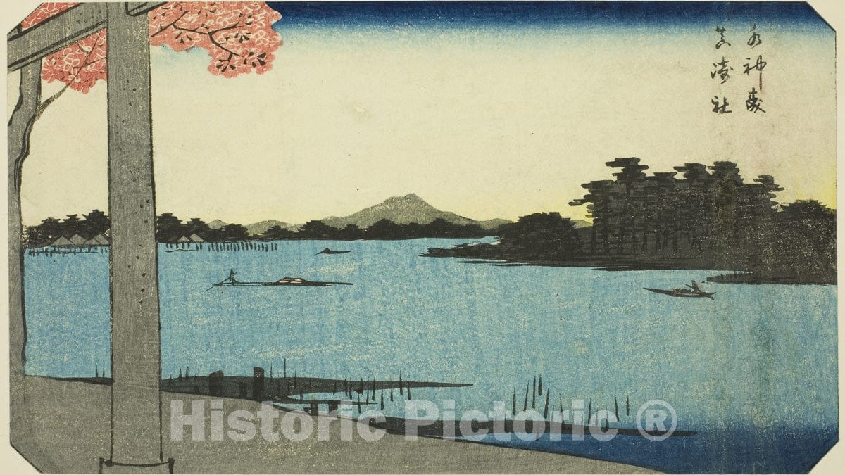 Art Print : Suijin Woods and the Shrine at Massaki (Suijin no mori, Massaki yashiro), section of a sheet , Utagawa Hiroshige, c 1857, Vintage Wall Decor :