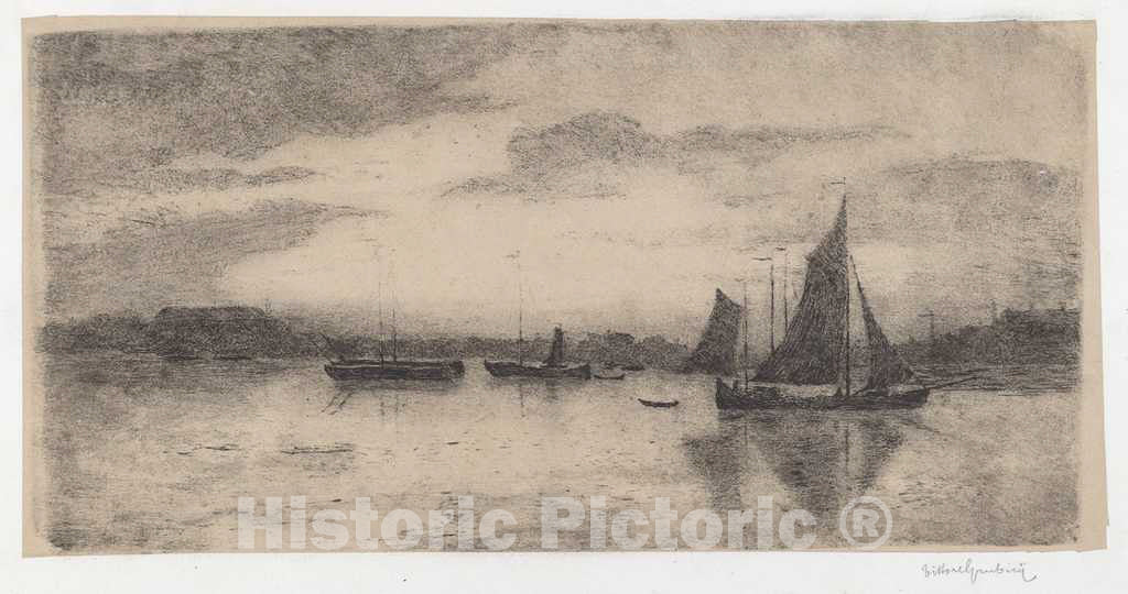 Artist: Vittore Grubicy | Print: Antwerp: Sunset [Anversa: Tramonto] | Original Medium: aquatint and softground etching with monotype inking on chine coll?