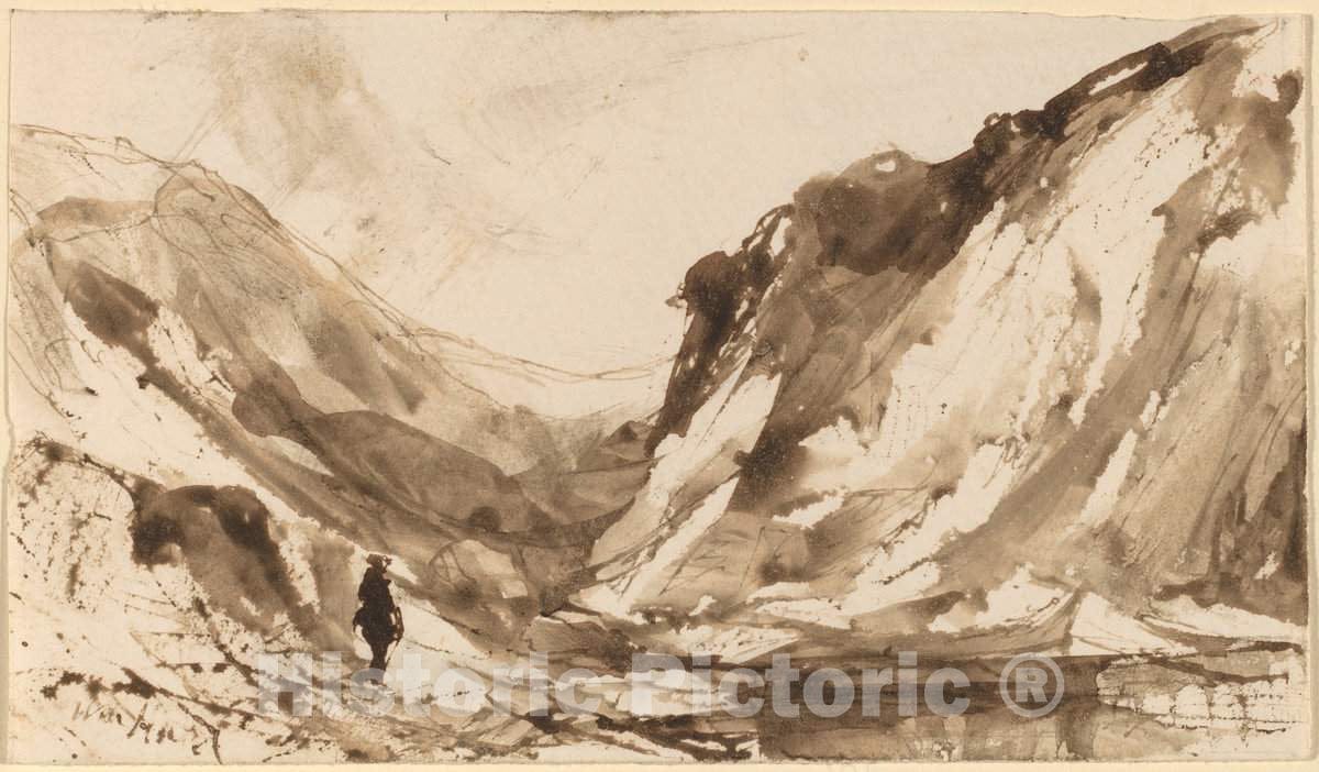 Artist: William Hart | Drawing: Deep Valley in Mountainous Landscape | Original Medium: pen and brown ink with brown wash