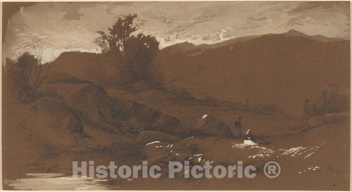 Art Print : William Hart, Figures in a Landscape, 1860 - Vintage Wall Art