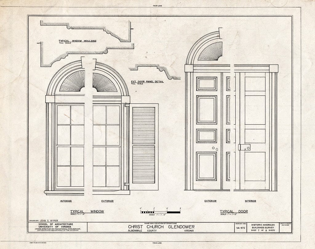 Blueprint Door and Window Details - Christ Church (Episcopal), State Routes 713 & 712, Glendower, Albemarle County, VA