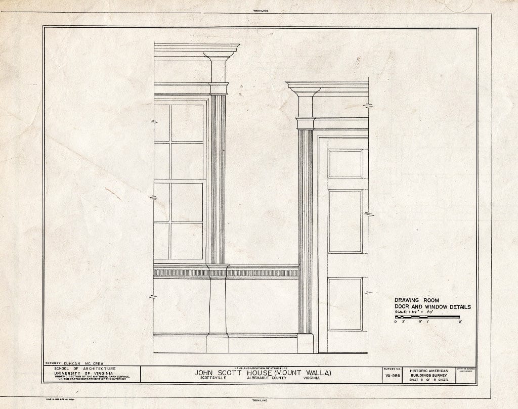 Blueprint Door and Window Details - John Scott House, Jackson Street, Scottsville, Albemarle County, VA