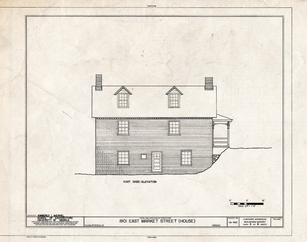 Blueprint East Elevation - 1901 East Market Street (House), Charlottesville, Charlottesville, VA