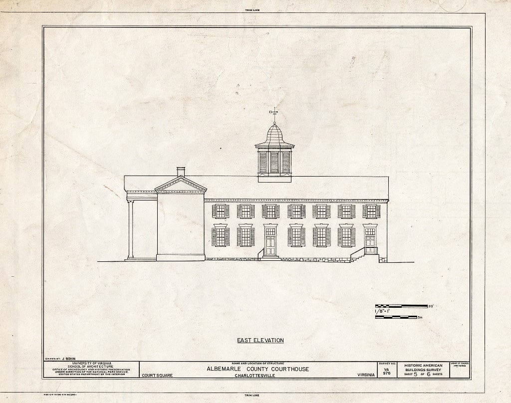 Blueprint East Elevation - Albemarle County Courthouse, Court Square, Charlottesville, Charlottesville, VA