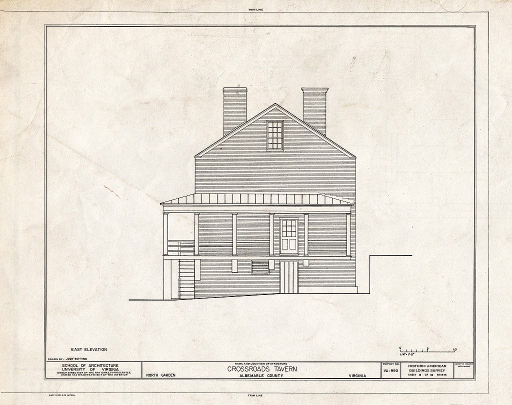 Blueprint East Elevation - Crossroads Tavern, State Route 692, North Garden, Albemarle County, VA