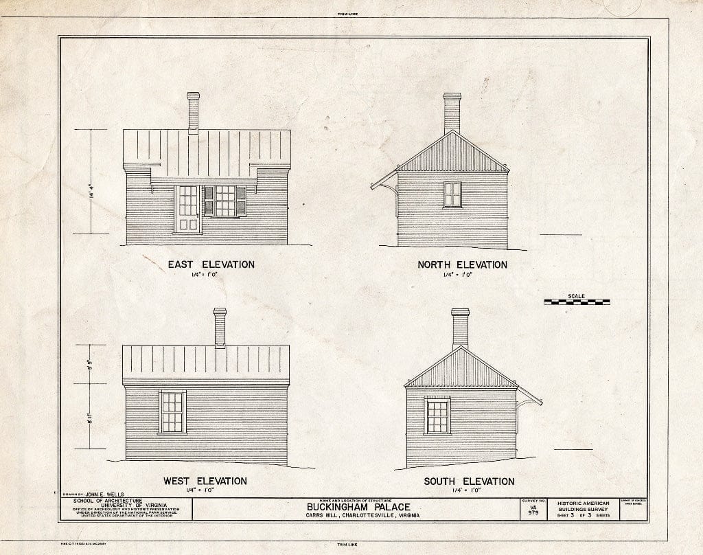 Blueprint Elevation Drawings - Buckingham Palace, Carr's Hill, University of Virginia Campus, Charlottesville, Charlottesville, VA