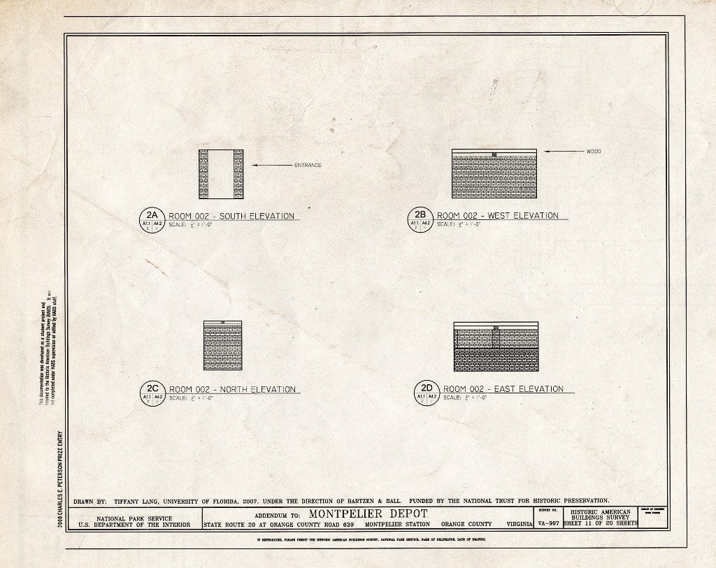 Blueprint Elevations of Room 002 - Montpelier Depot, State Route 20 at Orange County Road 639, Montpelier Station, Orange County, VA