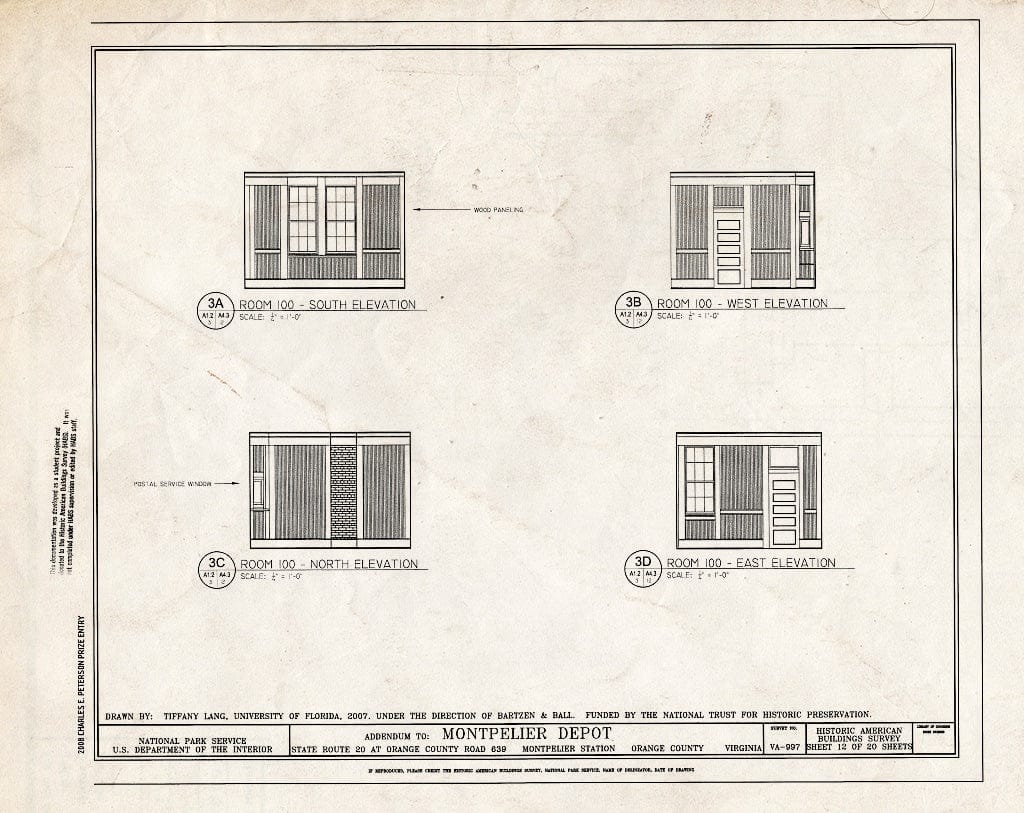 • Blueprint Elevations of Room 100 - Montpelier Depot, State Route 20 at Orange County Road 639, Montpelier Station, Orange County, VA