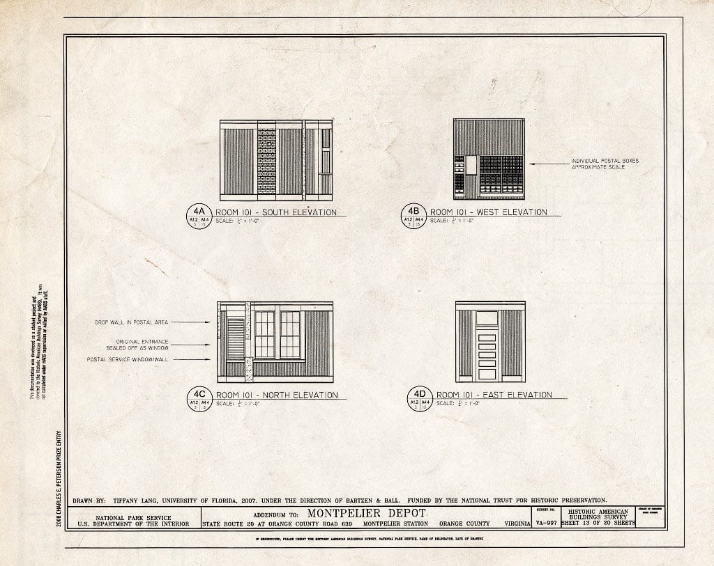Blueprint Elevations of Room 101 - Montpelier Depot, State Route 20 at Orange County Road 639, Montpelier Station, Orange County, VA
