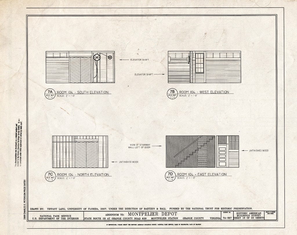 • Blueprint Elevations of Room 104 - Montpelier Depot, State Route 20 at Orange County Road 639, Montpelier Station, Orange County, VA