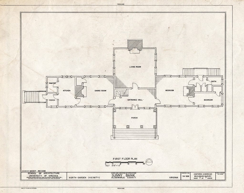 Blueprint First Floor Plan - Sunny Bank, State Route 712 Vicinity, North Garden, Albemarle County, VA