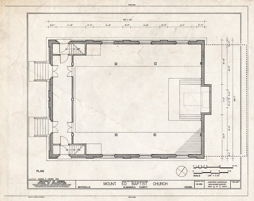 Blueprint Floor Plan - Mount Ed Baptist Church, State Route 635, Batesville, Albemarle County, VA