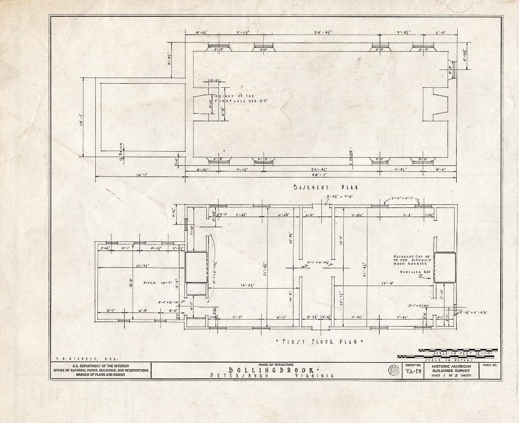 Blueprint HABS VA,27-PET,8- (Sheet 1 of 5) - Bollingbrook, Franklin, Madison & Jefferson Streets Vicinity, Petersburg, Petersburg, VA