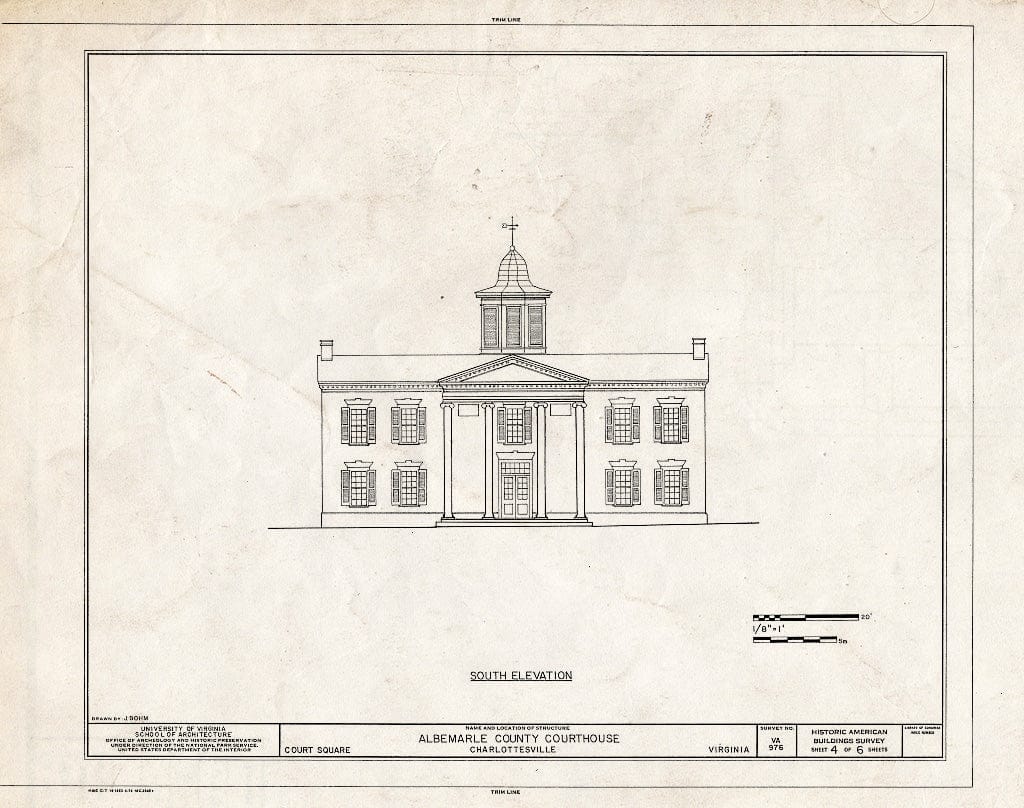 Blueprint South Elevation - Albemarle County Courthouse, Court Square, Charlottesville, Charlottesville, VA