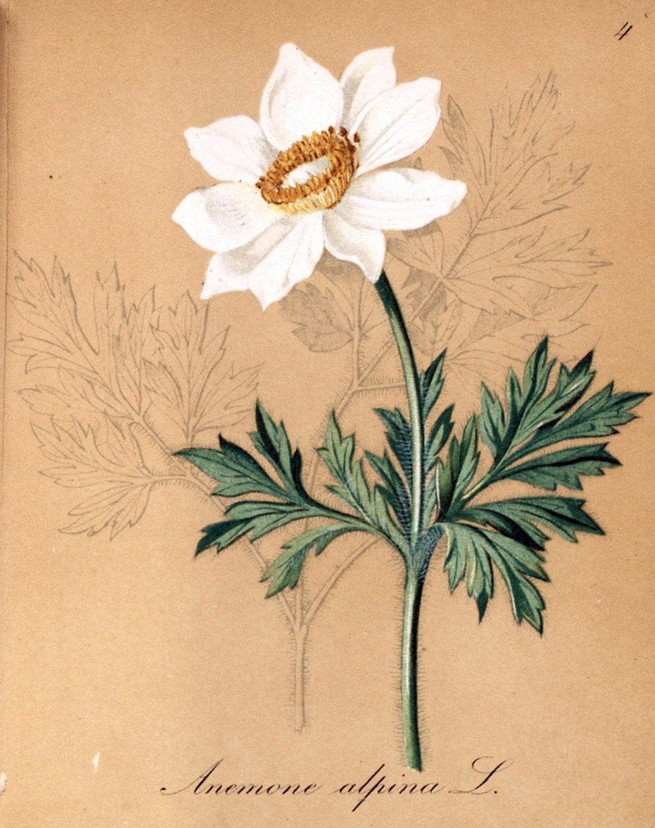 Die Alpenpflanzen nach der Natur gemalt /.Prag :F. Tempsky,1879-1884..||"artist:name=Josef Seboth" artist:viaf=55051190 "taxonomy:binomial=Anemone alpina"