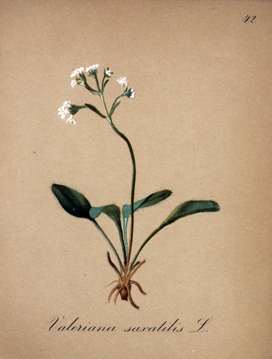 Die Alpenpflanzen nach der Natur gemalt /.Prag :F. Tempsky,1879-1884..||"taxonomy:binomial=Valeriana saxatilis" "artist:name=Josef Seboth" artist:viaf=55051190