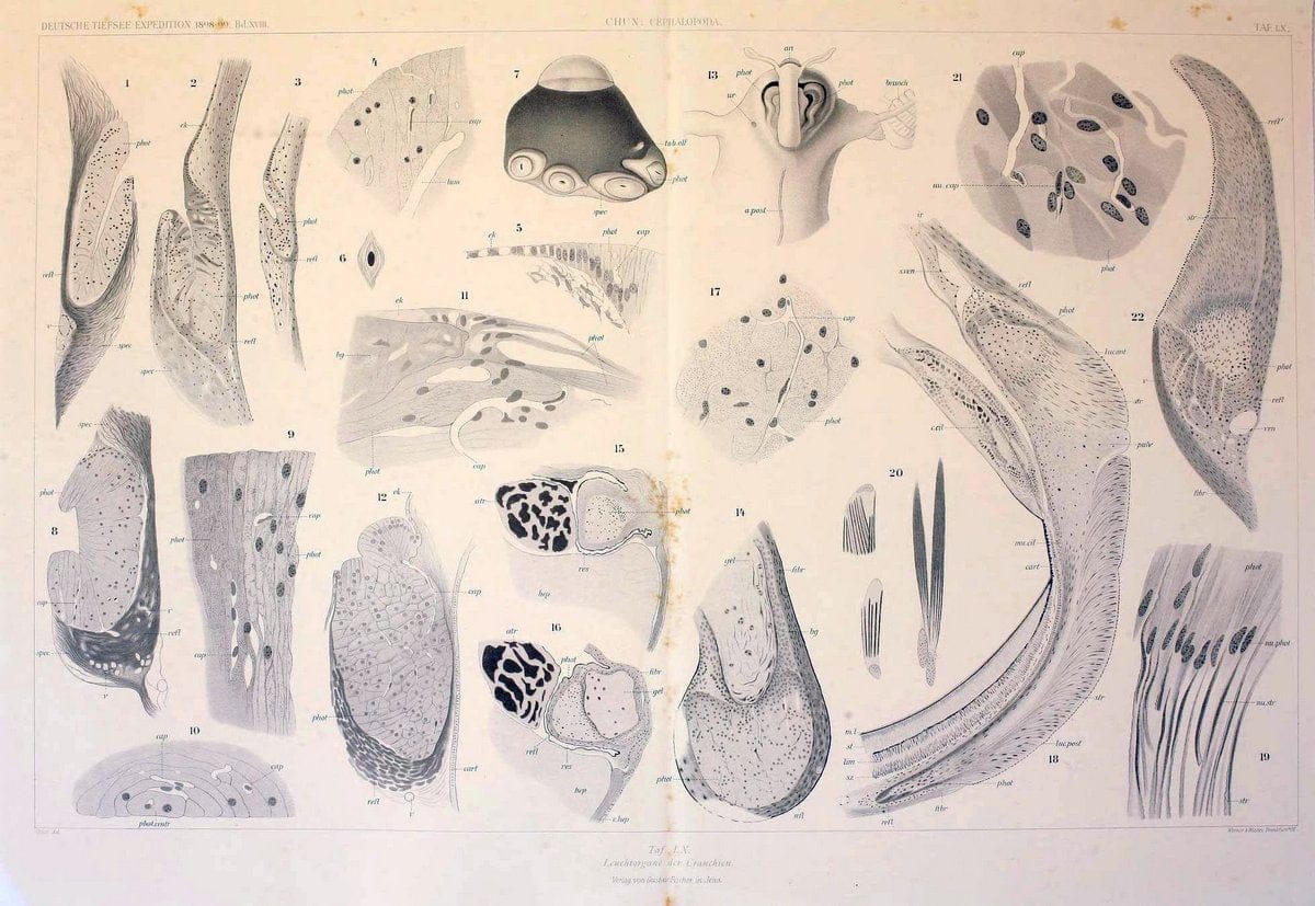 • .Die Cephalopoden. Bd. 18, T.1 (Atlas)[Jena],G. Fischer,1910-1915. | Cephalopoda "Valdivia (Ship)" "Valdivia Expedition (1898-1899)"  "Woods Hole" | Vintage Print Reproduction 471403