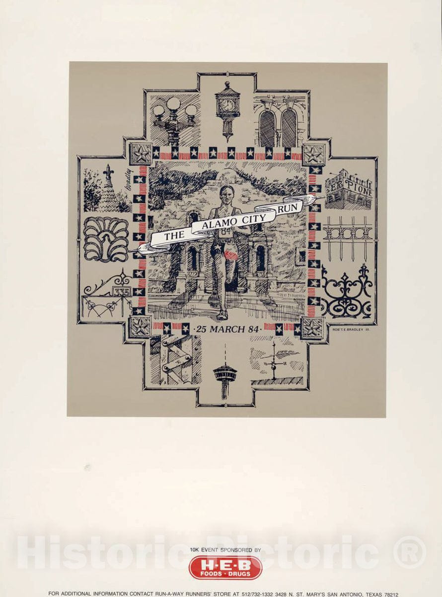 Vintage Poster - The Alamo City Run 25 March 84, Historic Wall Art
