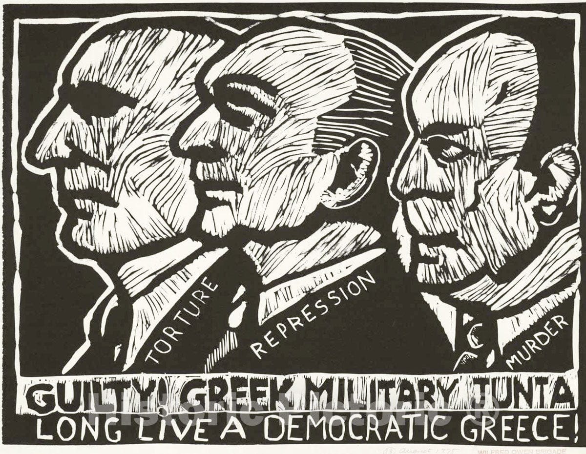 Vintage Poster - Guilty! Greek Military junta. Long Live a Democratic Greece!, Historic Wall Art