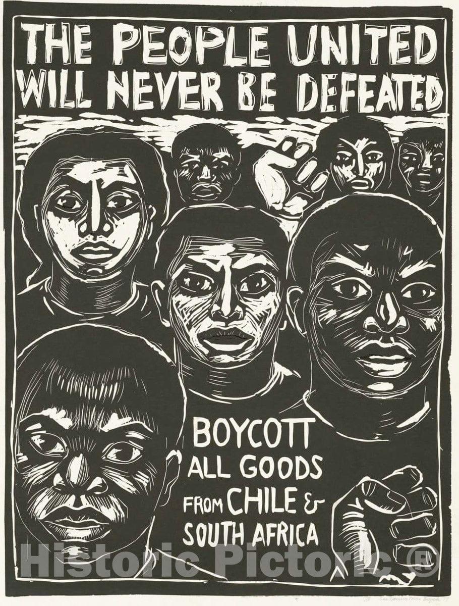 Vintage Poster - The People United Will Never be Defeated. Boycott The repressive regimes of Chile & South Africa 1, Historic Wall Art