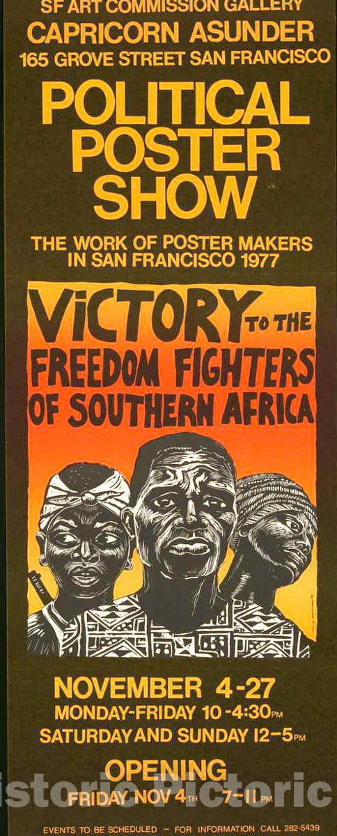 Vintage Poster - Political Poster Show. SF Art Commission Gallery. Victory to The Freedom Fighters of Southern Africa, Historic Wall Art