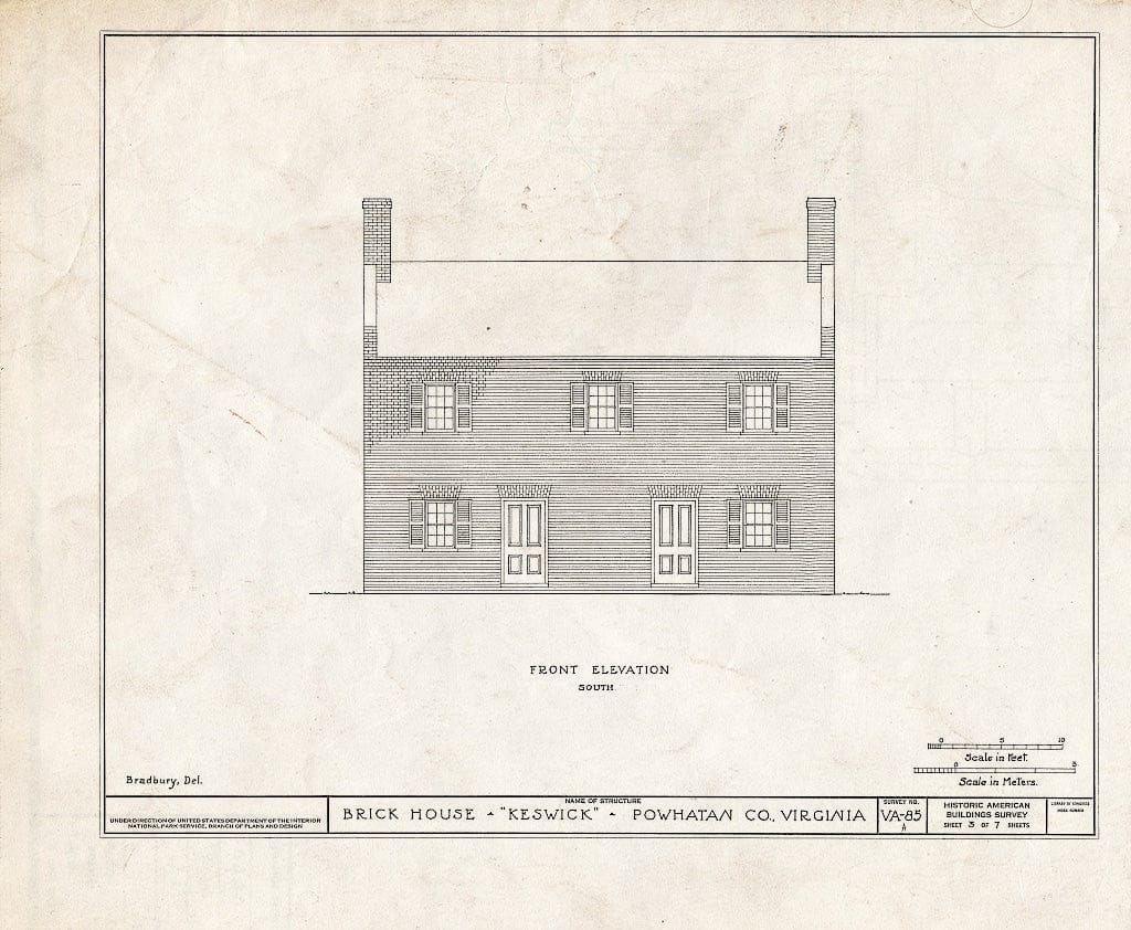 Blueprint HABS VA,73-Hug.V,1A- (Sheet 1 of 7) - Keswick, Brick House (First), State Route 711 Vicinity, Huguenot, Powhatan County, VA