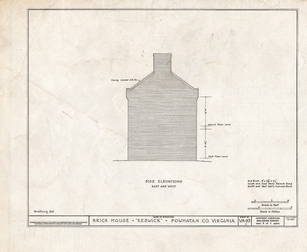 Blueprint HABS VA,73-Hug.V,1A- (Sheet 5 of 7) - Keswick, Brick House (First), State Route 711 Vicinity, Huguenot, Powhatan County, VA