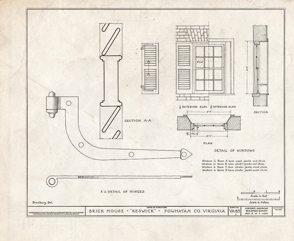 Blueprint HABS VA,73-Hug.V,1A- (Sheet 7 of 7) - Keswick, Brick House (First), State Route 711 Vicinity, Huguenot, Powhatan County, VA