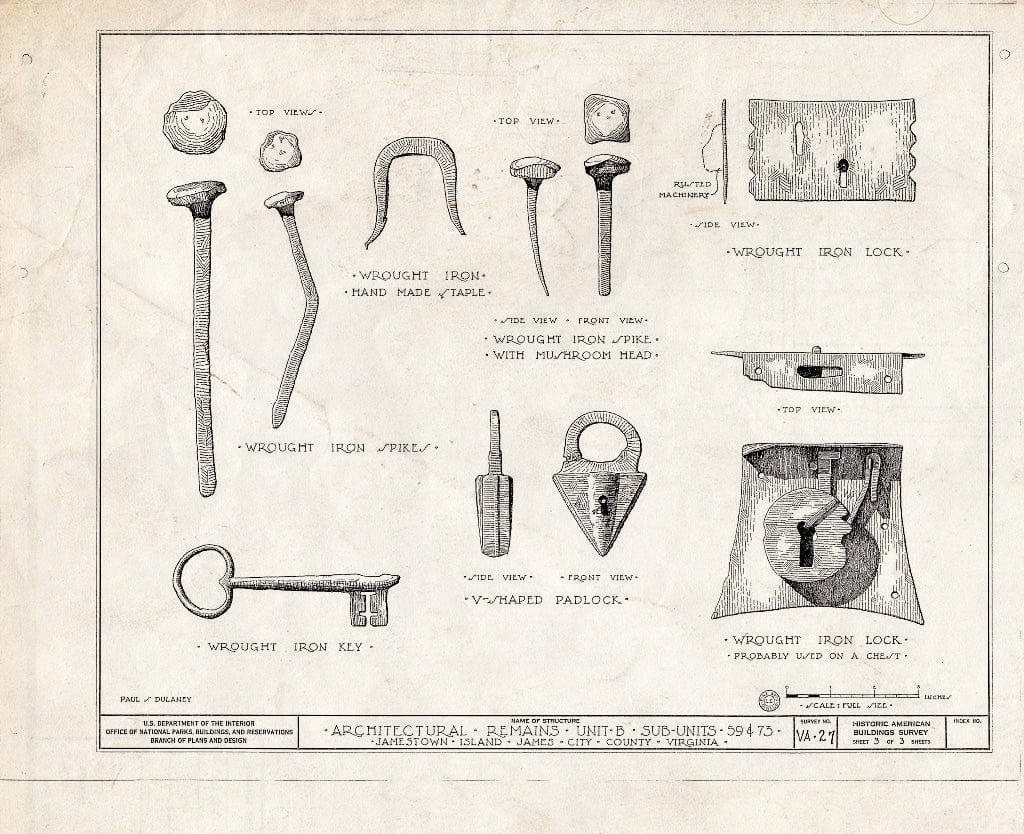 Blueprint HABS VA,48-JAM,3- (Sheet 0 of 3) - Architectural Remains, Unit B, Sub-Units 59 & 73, Jamestown, James City County, VA