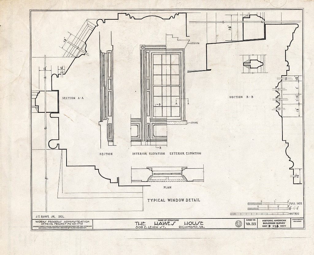 Blueprint HABS VA,44-Rich,17- (Sheet 9 of 14) - Hawes House, 506 East Leigh Street, Richmond, Independent City, VA