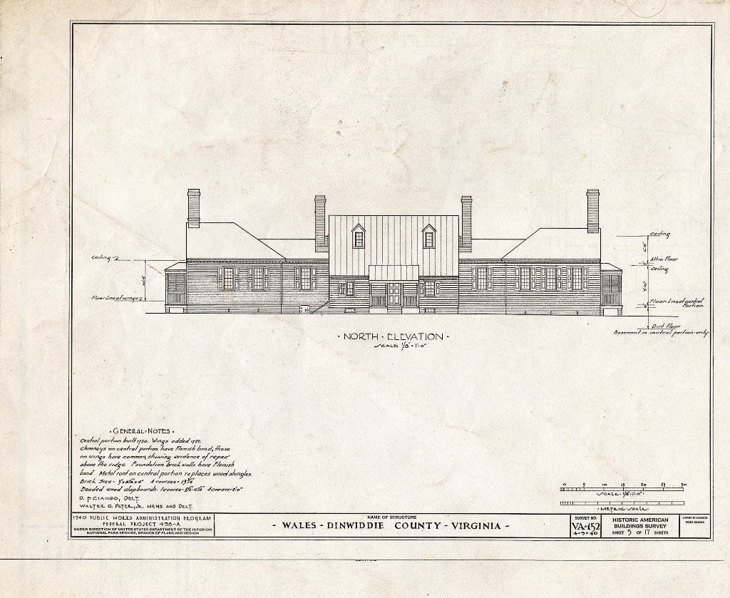 Blueprint HABS VA,27-PET.V,1- (Sheet 2 of 17) - Wales, U.S. Route 460 Vicinity, Petersburg, Petersburg, VA